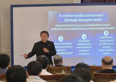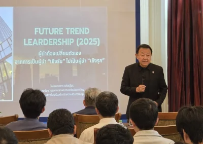 คุณถาวร ชลัษเฐียร ประธาน สม.เป็นประธานในพิธีปิดหลักสูตรผู้จัดการโรงงาน เพื่อให้แนวคิดในการเติบโตเป็นผู้บริหารที่สมบูรณ์ โดยให้ข้อคิดเรื่อง การเรียนรู้ ในการเป็นผู้บริหารต้องรู้จริงและรู้รอบ แต่การเรียนรู้นั้น “เราไม่สามารถเรียนรู้ใบไม้ได้หมดทั้งป่า แต่เราสามารถเรียนรู้ได้จากใบใม้ในกำมือ”เพียงแค่เราเริ่มเรียนรู้จากสิ่งเล็ก ๆ ใกล้ตัวก็จะทำให้สามารถรู้เรื่องราวต่างๆ รอบตัวได้มากขึ้นซึ่งจะทำให้เกิดการเรียนรู้อย่างต่อเนื่อง”