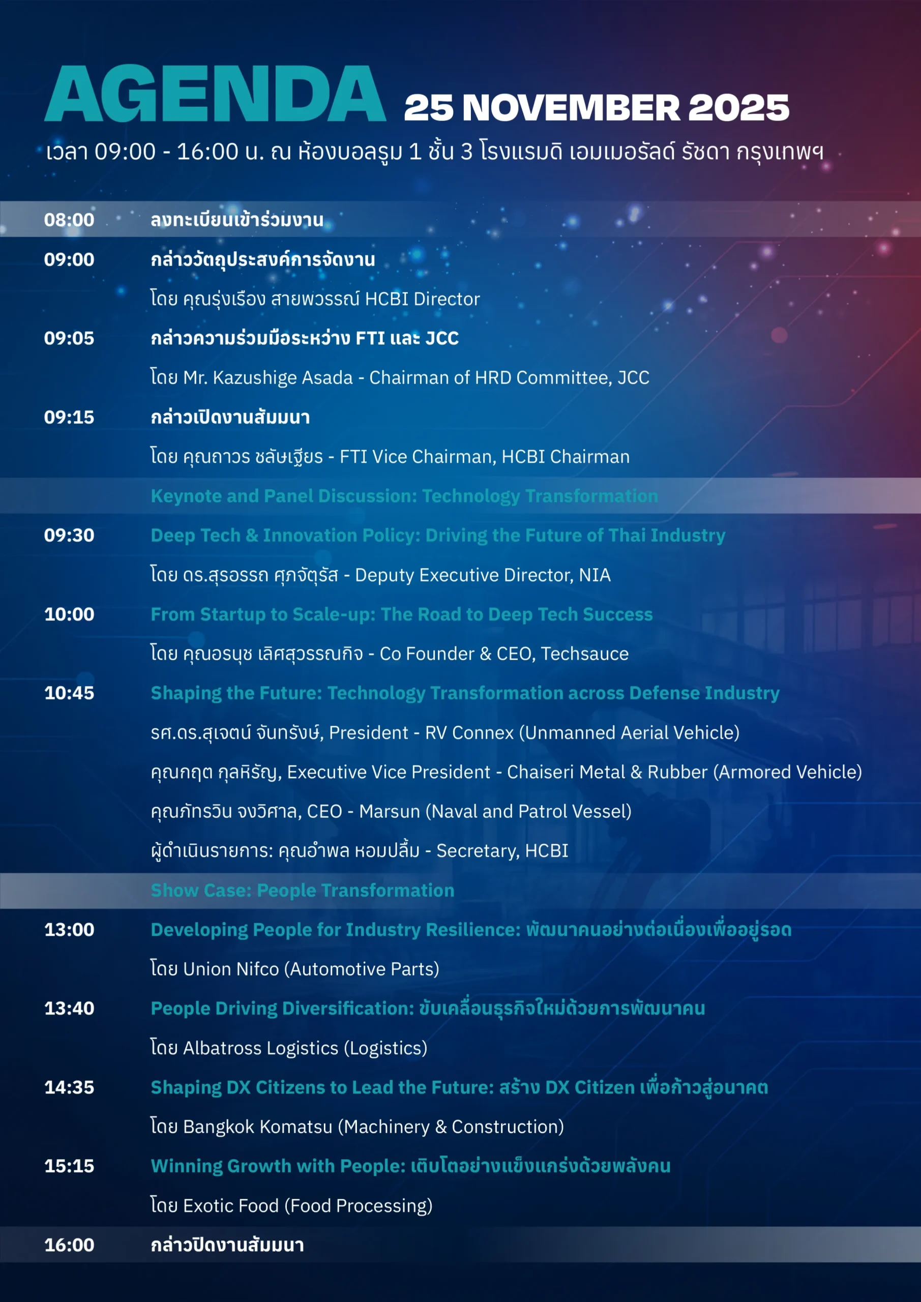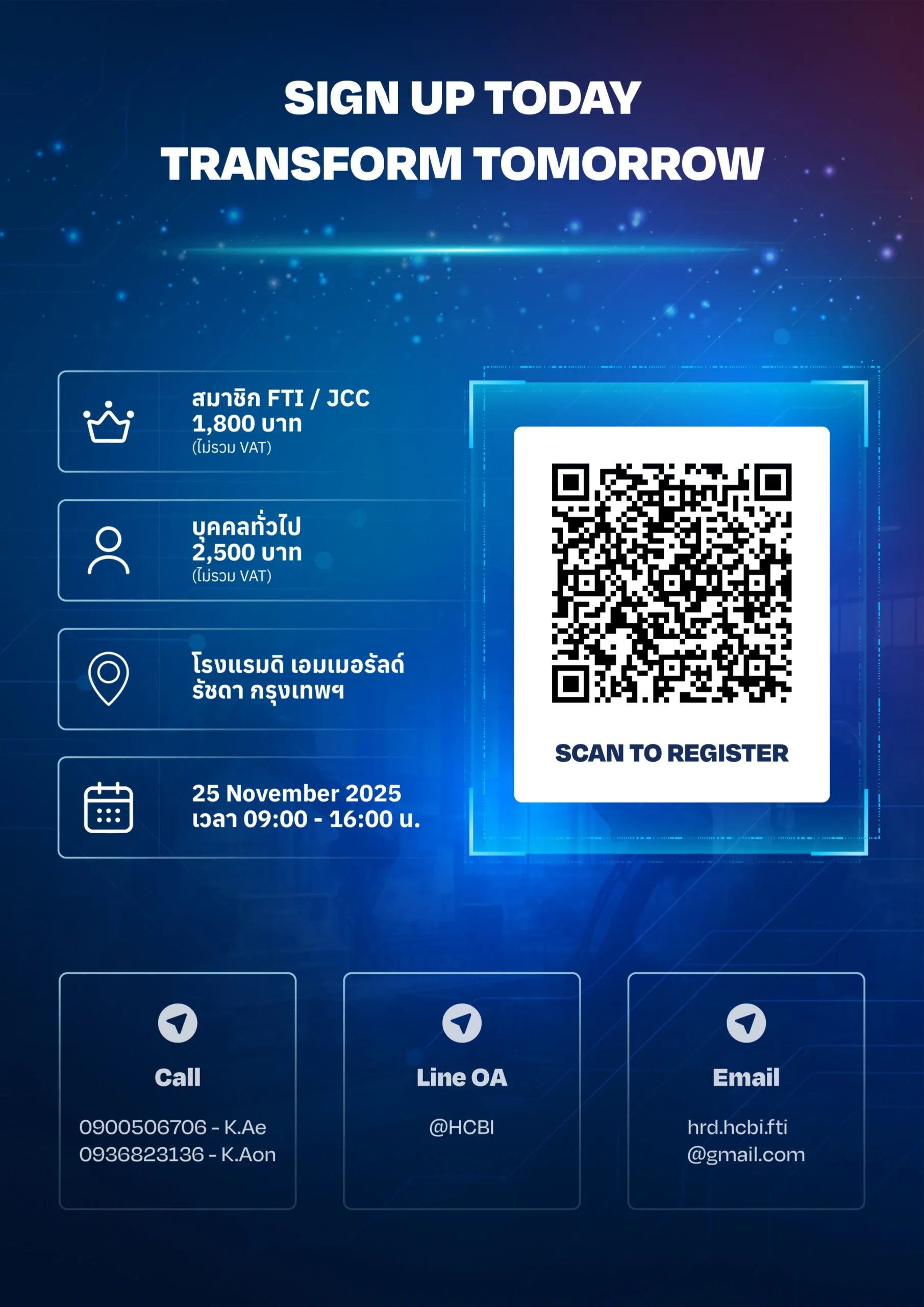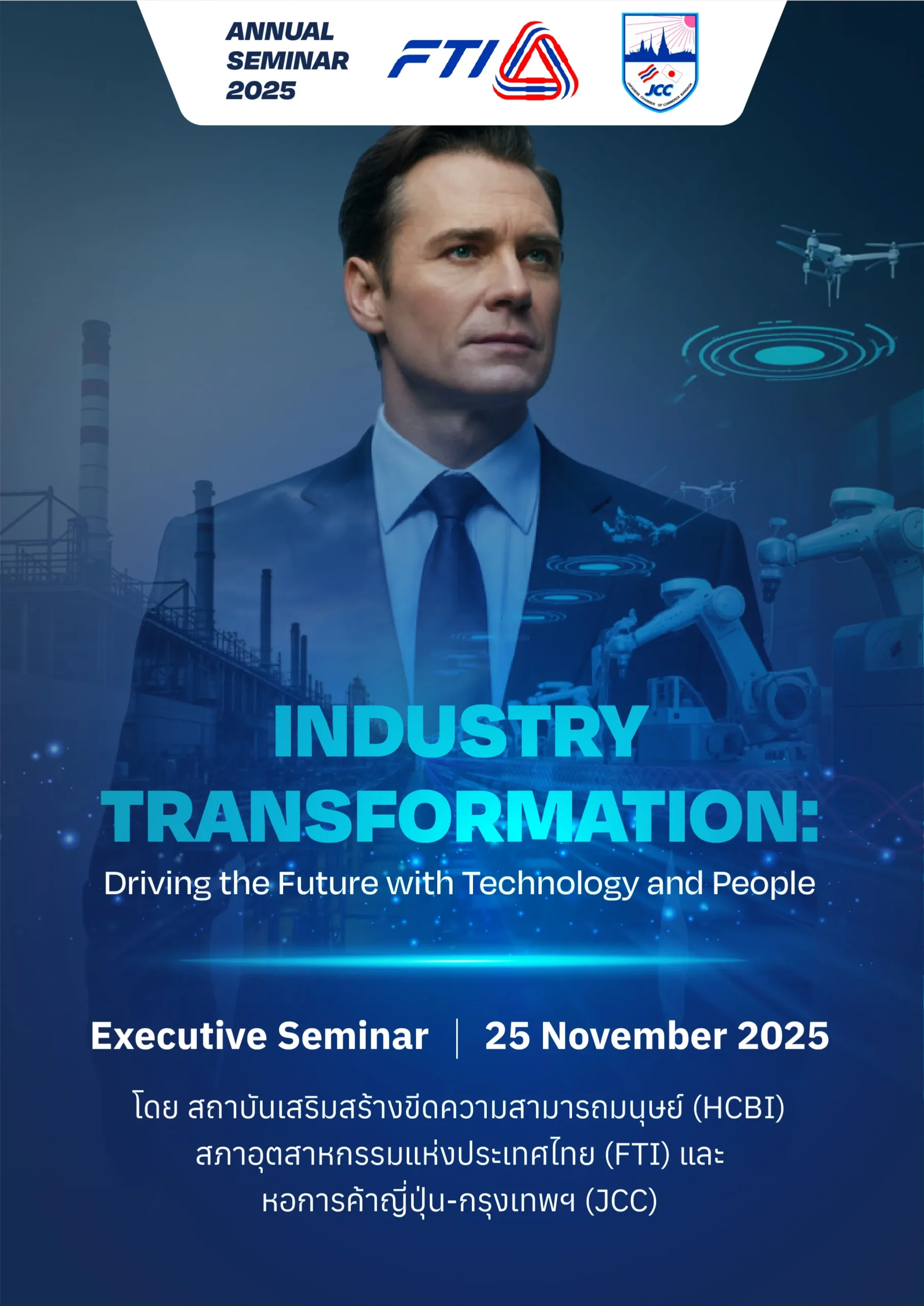 🎉 สัมมนาใหญ่แห่งปี 2025 🎉โดยสถาบันเสริมสร้างขีดความสามารถมนุษย์ (HCBI) สภาอุตสาหกรรมแห่งประเทศไทย (FTI) ร่วมกับ หอการค้าญี่ปุ่น-กรุงเทพฯ (JCC)
