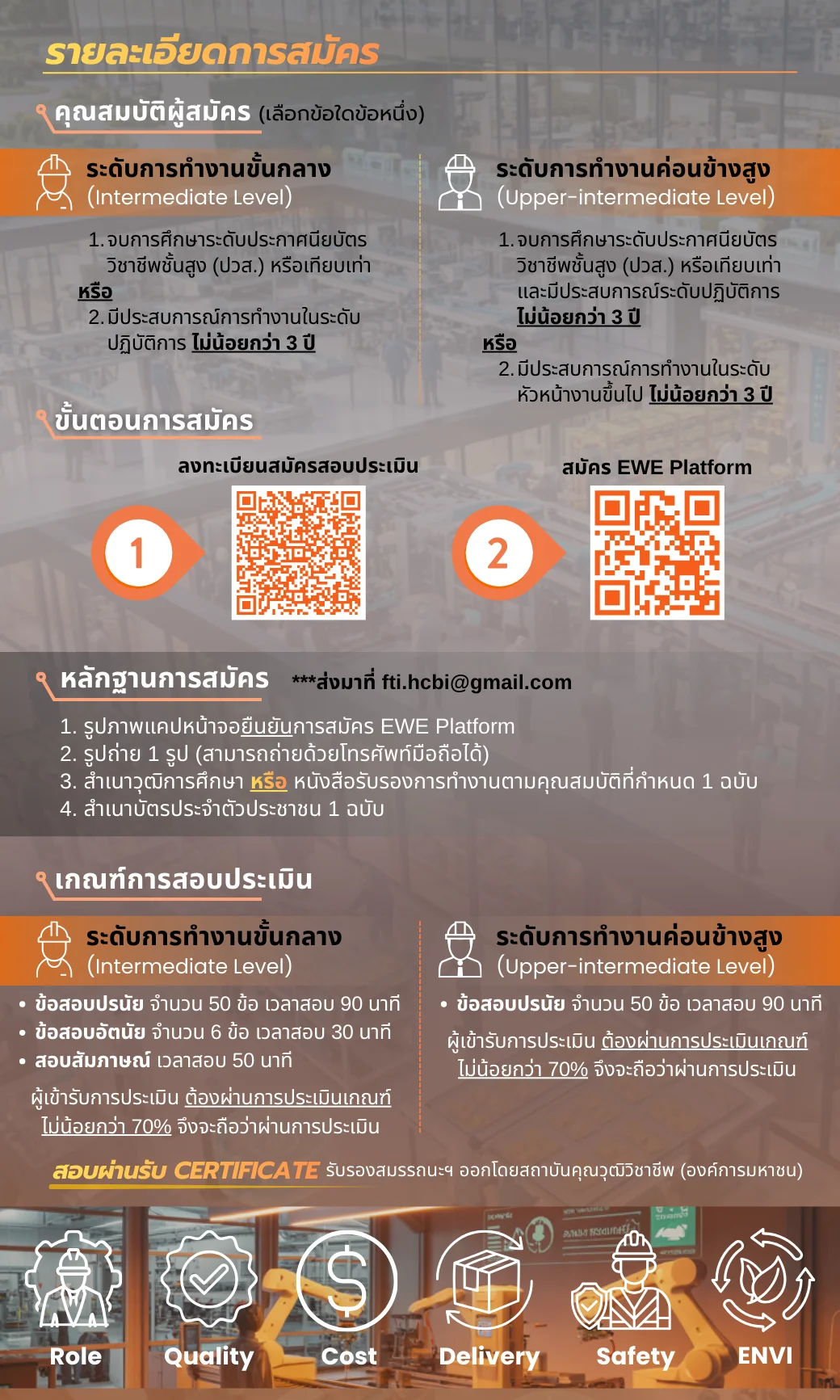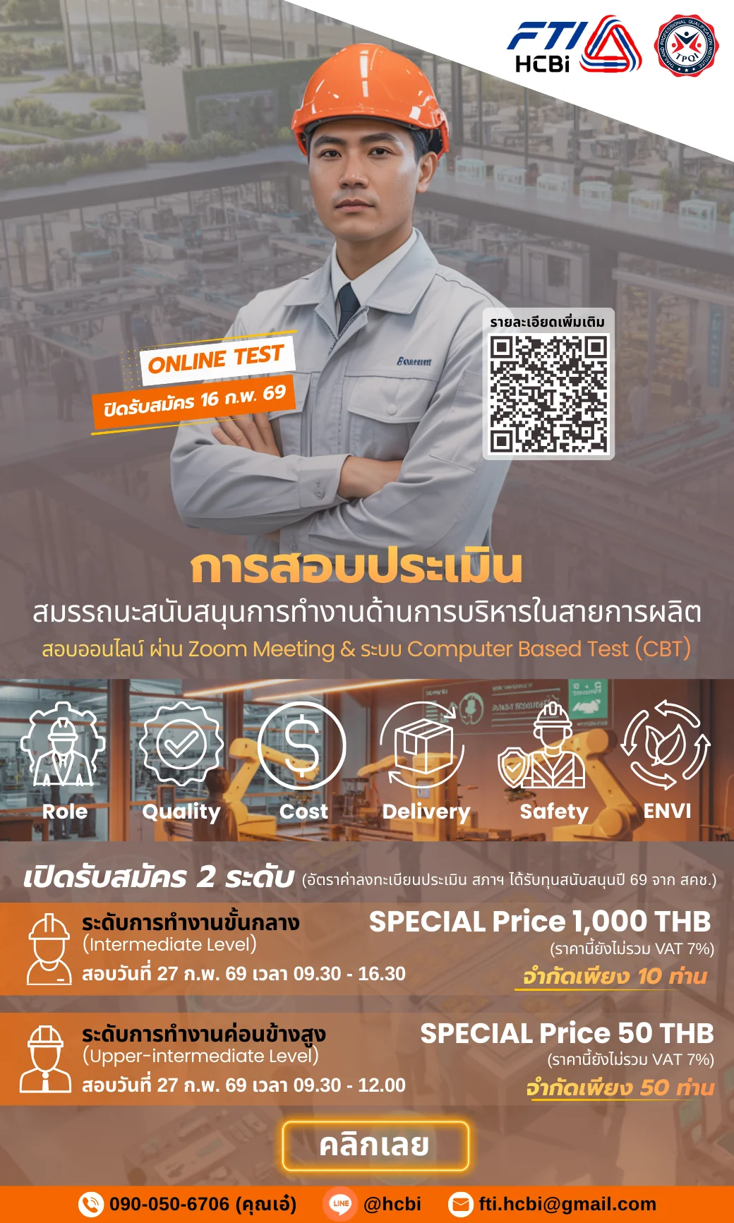 โดย สภาอุตสาหกรรมแห่งประเทศไทย (ส.อ.ท.) ร่วมกับ สถาบันคุณวุฒิวิชาชีพ (องค์การมหาชน) สคช. 🖥️ สอบออนไลน์ผ่าน Zoom Meeting และระบบ Computer Based Test (CBT) I ดูรายละเอียด ลงทะเบียน